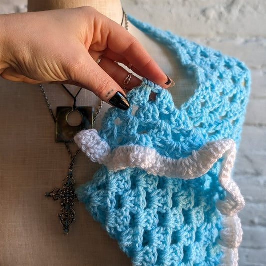 Vintage Crochet Ruffle Knit Wrap Granny Cottagecore Pastel Kawaii Shawl Poncho