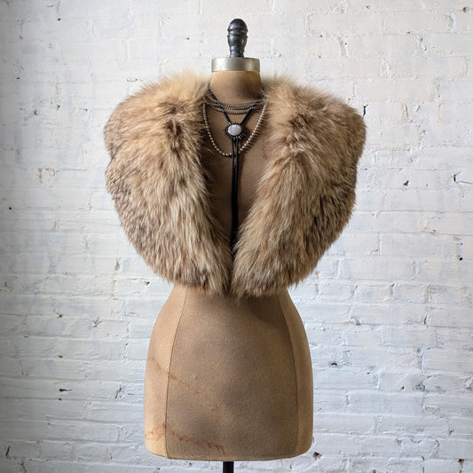 Vintage Fox Fur Blonde Stole Shrug Luxury Scarf Mob Wife Shawl Glam Furry Collar