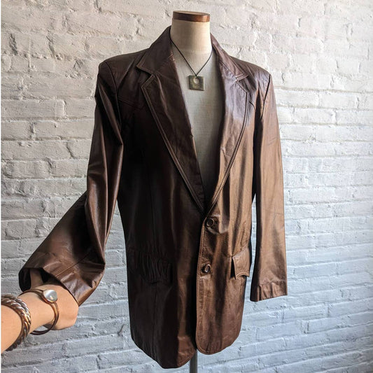 70s 80s Vintage Western Pioneer Wear Leather Duster Rust Brown Blazer Jacket