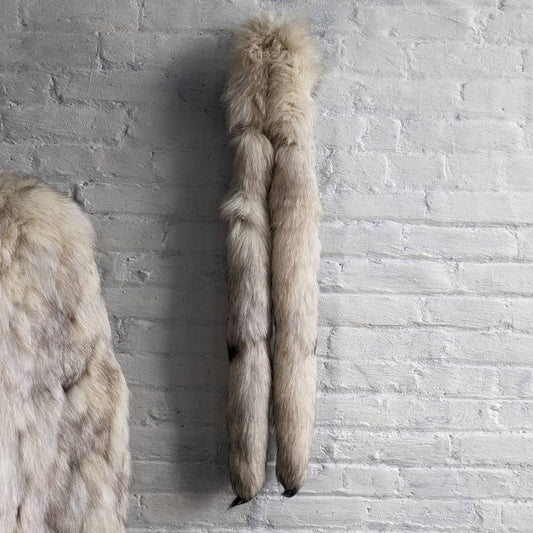 60s 70s Vintage Fluffy Furry Genuine Fox Fur Oversize Jacket Fox Tail Scarf Coat