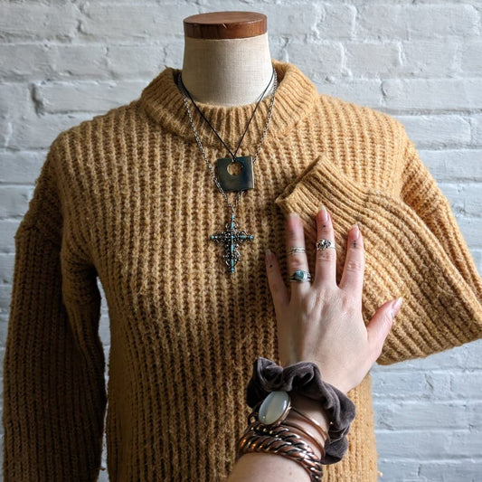 Y2K Vintage Mustard Yellow Chunky Knit Sweater Fuzzy Minimalist Cottagecore Top