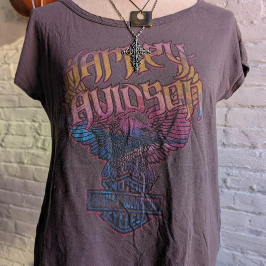 Y2K Vintage Harley Graphic Biker Tee Faded Graphic Print USA Motorcycle T-shirt