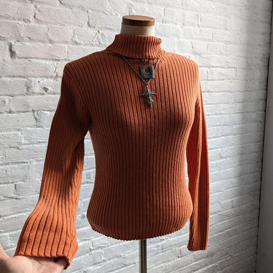 Y2K Vintage Orange Ribbed Knit Sweater Minimalist Sexy Grannycore Turtleneck Top