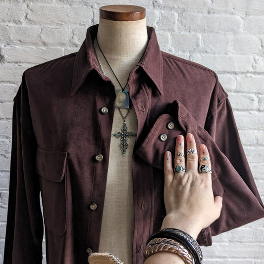 90s Vintage Brown Suede Jacket Vegan Knit Shacket Cozy Boho Western Cardigan