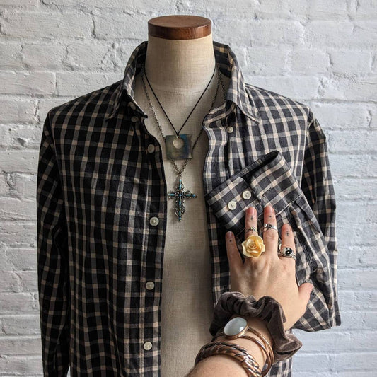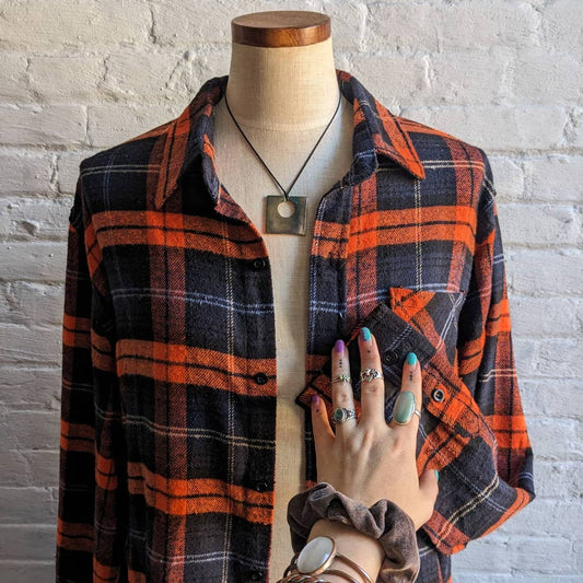 90s Vintage Grunge Fairy Flannel Minimalist Boyfriend Oversize Earthy Plaid Top
