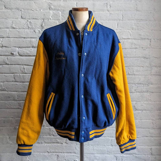 90s Vintage Embroidered Wool Varsity Bomber Letterman Colorblock Striped Jacket