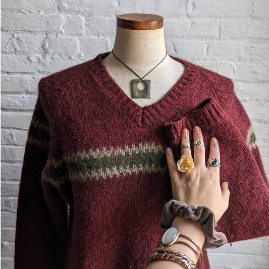90s Vintage Knit Wool Classic Christmas Grandpa Sweater Minimalist Fairisle Top