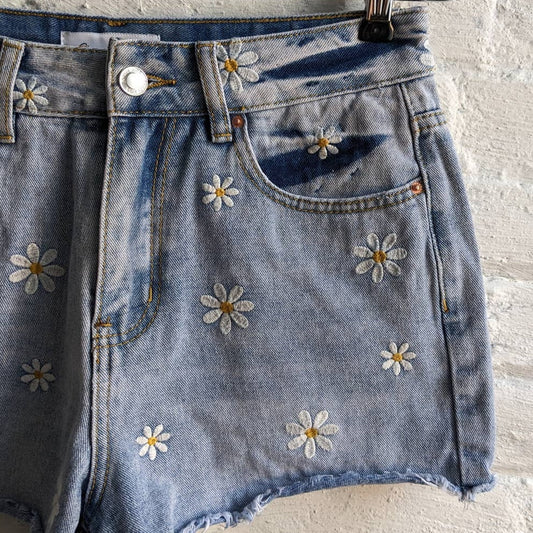 Retro Embroidered Distressed Denim Shorts Daisy Dukes Boho Floral Jean Cutoffs
