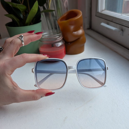 Retro White Square Mob Wife Festival Sunglasses Boho Chic Tinted Sunnies Shades