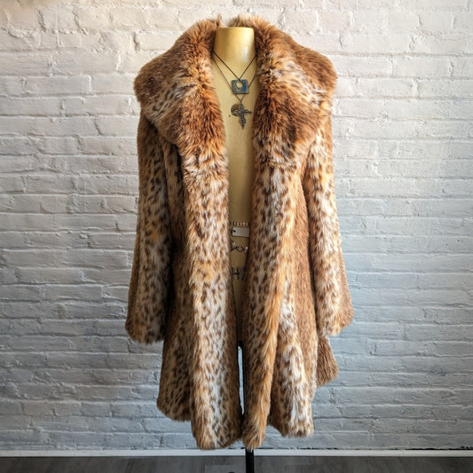 Vintage Cheetah Leopard Print Faux Fur Coat Trench Shaggy Groovy Grunge Jacket