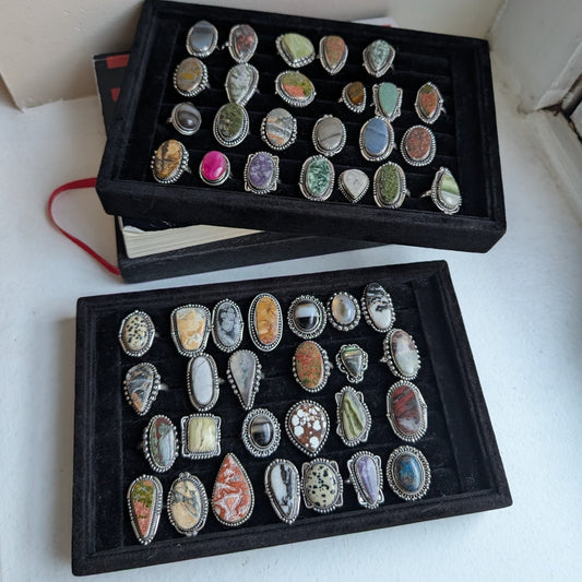 Green and Pink Natural Stone Ring Boho Chic Sterling Silver Vintage Size 8