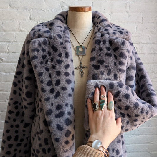 Y2K Cheetah Faux Fur Mobwife Coat Leopard Animal Print Plush Fuzzy Furry Jacket