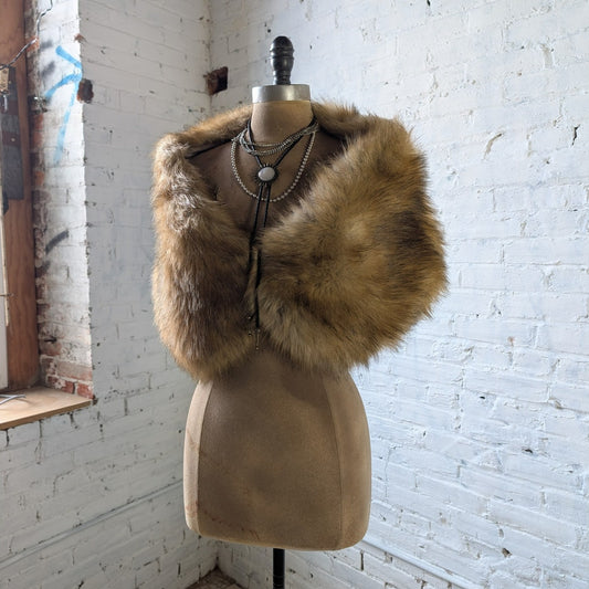 Vintage Faux Fur Brown Stole Luxury Scarf Boho Chic Shawl Bridal Fuzzy Shrug