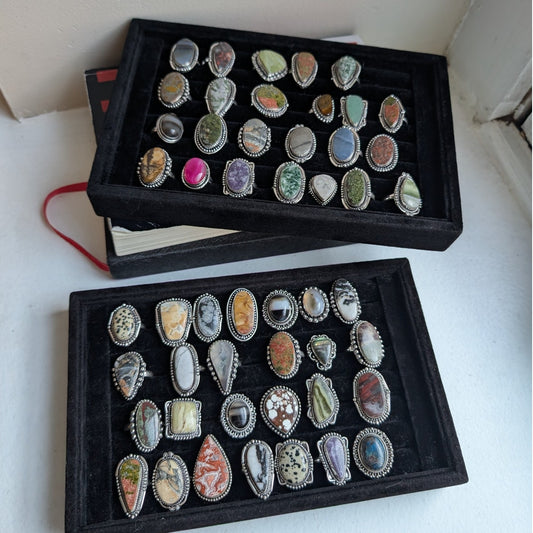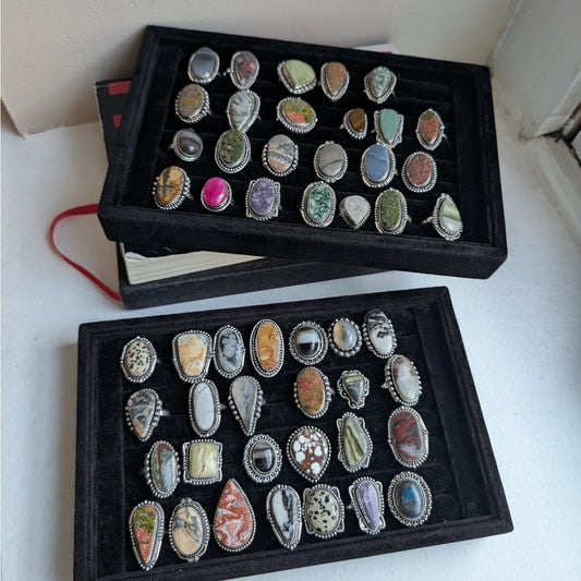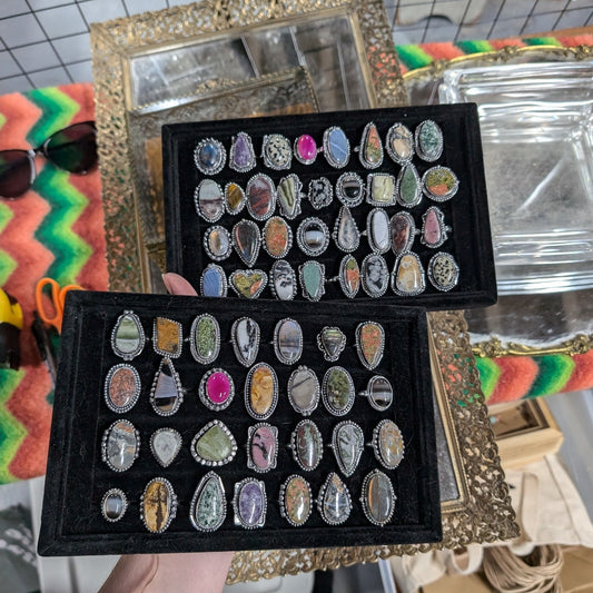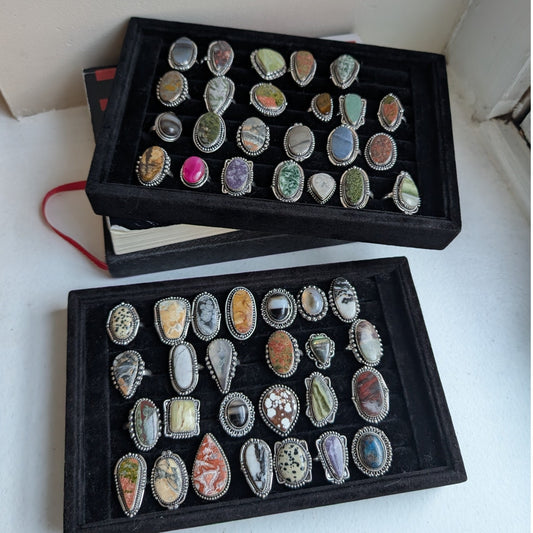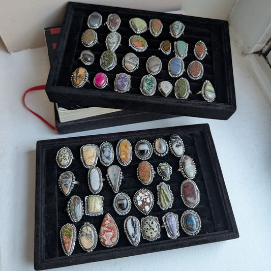 Earthy Oval Statement Ring Sterling Silver Ring Vintage Boho Natural Stone 8.75