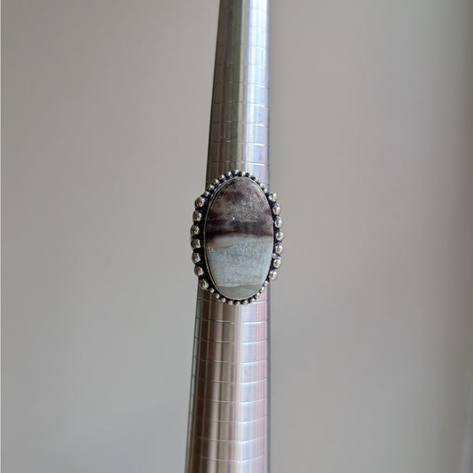 Grey Swirl Oval Sterling Silver Ring Retro Vintage Boho Natural Stone Size 6.75