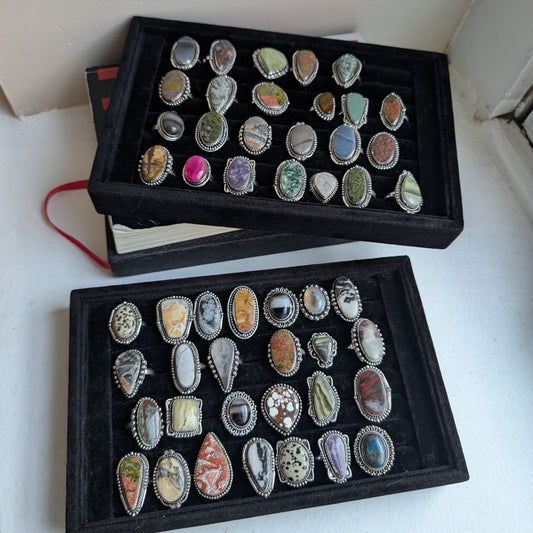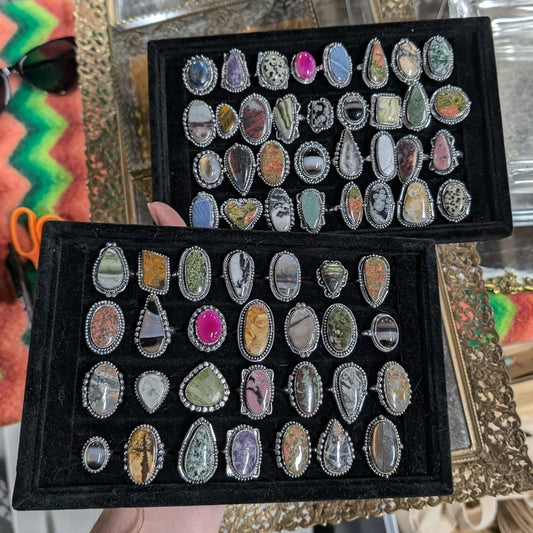 Boho Cowgirl Square Sterling Silver Ring Retro Vintage style Natural Stone Size9