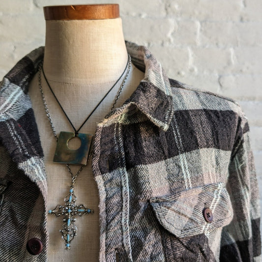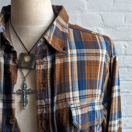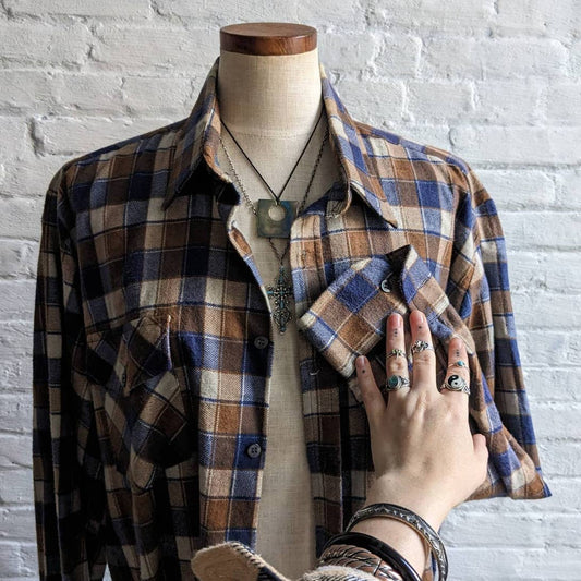 Vintage Oversize Boyfriend Plaid Flannel Dark Academia Grunge Earthy Forest Top