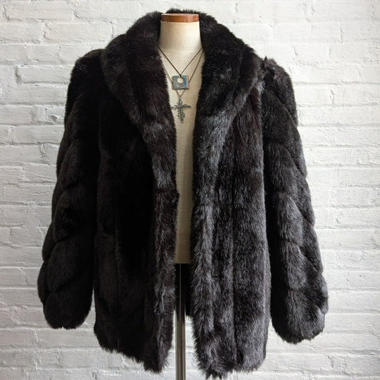 Vintage Brown Faux Fur Coat Plush Minimalist Mob Wife Fuzzy Glam Goth Jacket