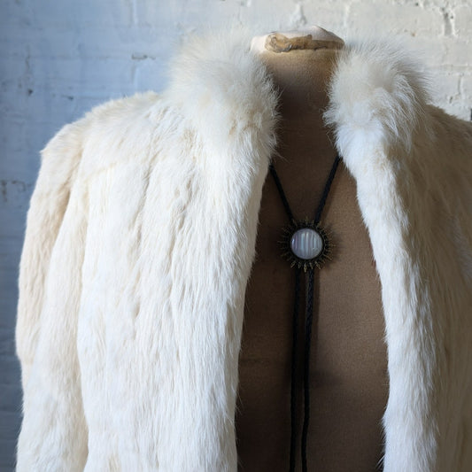 Vintage White Rabbit Fur Coat Mob Wife Minimalist Furry Boho Chic Glam Jacket