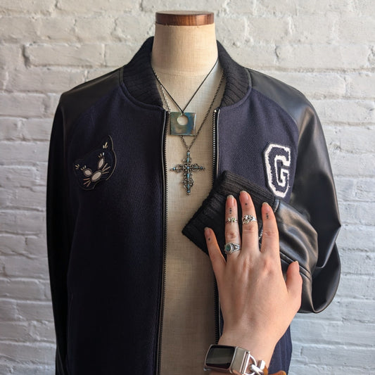 Y2K Vintage Wool Varsity Jacket Faux Leather Bomber Knit Utility Letterman Large