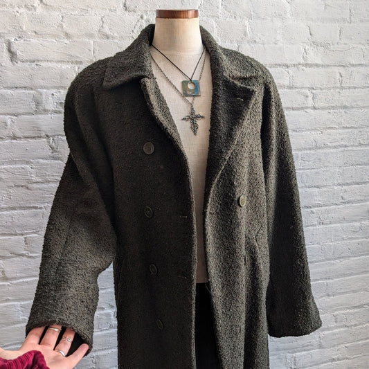 Y2K Vintage Green Wool Trench Coat Knit Earthtone Oversize Boho Jacket Medium