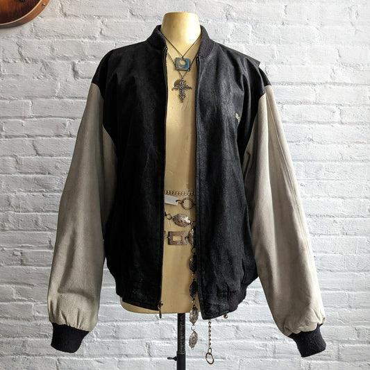 Vintage Black Leather Bomber Suede Varsity Jacket Letterman Colorblock Large