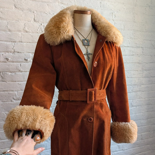 70s Brown Suede Jacket Penny Lane Fur Furry Leather Groovy Vintage Trench Coat