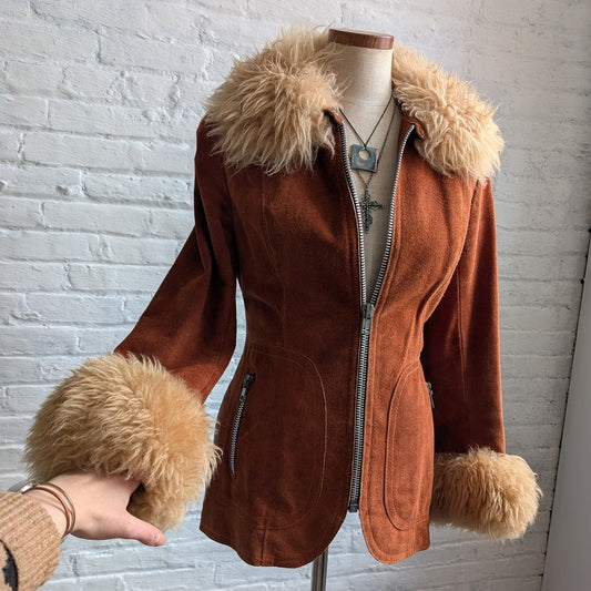 Vintage Brown Suede Penny Lane Jacket Groovy Furry 70s Leather Western Coat Smal