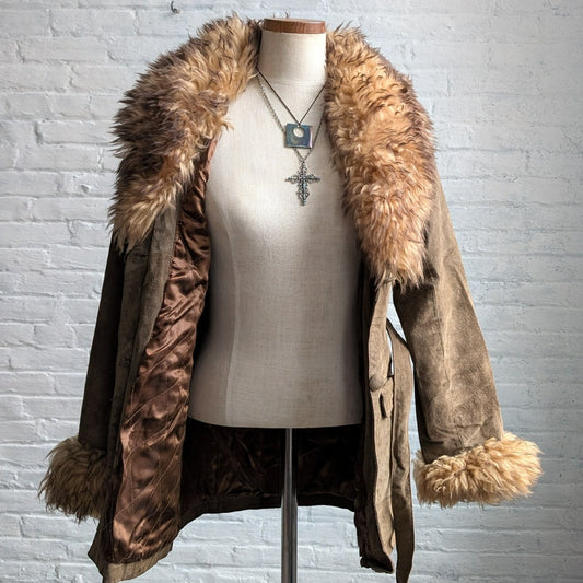 Vintage Brown Vegan Suede Penny Lane Jacket Y2K Tan Faux Fur Afghan Coat Small