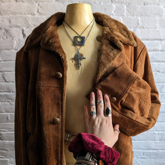 Vintage Brown Suede Penny Lane Jacket Groovy Fur Coat 70s Leather Western Medium