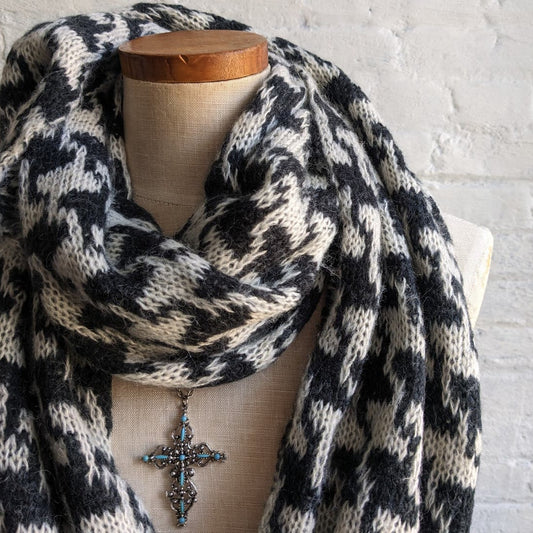 Fuzzy Minimalist Mohair Wool Houndstooth Cozy Chunky Knit Scarf Ski Bunny Wrap