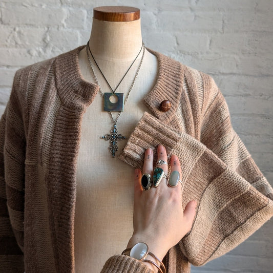 Vintage Minimalist Neutral Knit Grandpa Sweater Chunky Knit Earthy Boho Chic Top