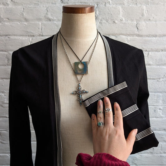 Vintage Black Stripe Knit Cardigan 70's Minimalist Groovy Mod Boho Sweater Small