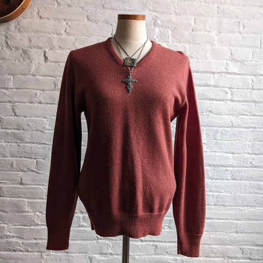70s Vintage Cable Knit Red Wool Sweater Minimalist Preppy Grandpa Blokecore Top
