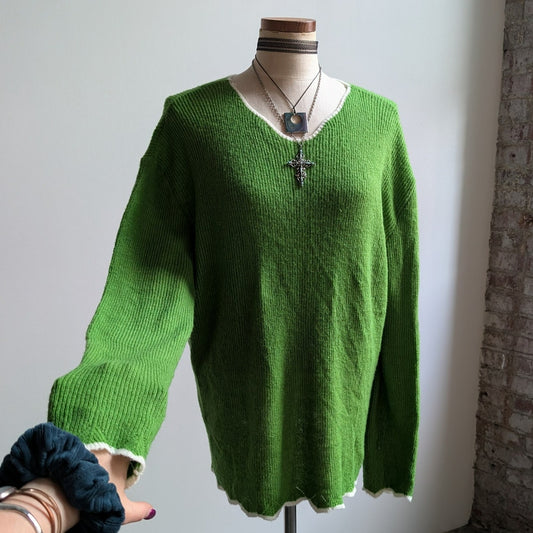 Vintage Green Chunky Knit Light Sweater Grunge Slouchy Cottagecore Woodsy Top L