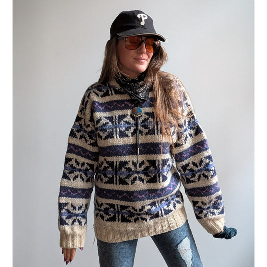 Vintage Wool Chunky Knit Fairisle Sweater Cosby Grandpa Cottagecore Top Medium