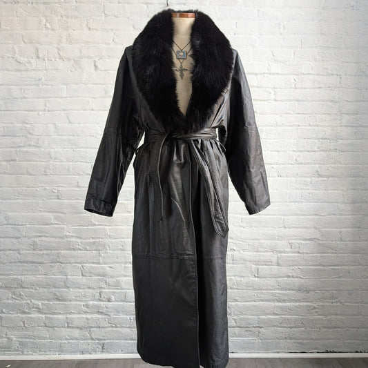 Vintage Black Leather Penny Lane Coat Fur Trench Minimalist Goth Furry Jacket