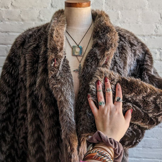 Vintage Mob Wife Chic Vegan Fur Coat Minimalist Penny Lane Boho Earthy Jacketz