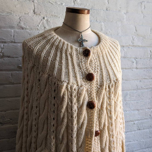 Vintage Minimalist Cable Knit Angelcore Poncho Fringe Cottage Prairie Sweater