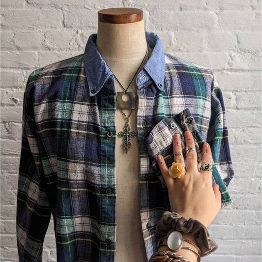 90s Vintage Grunge Fairy Flannel Minimalist Boyfriend Oversize Earthy Plaid Top