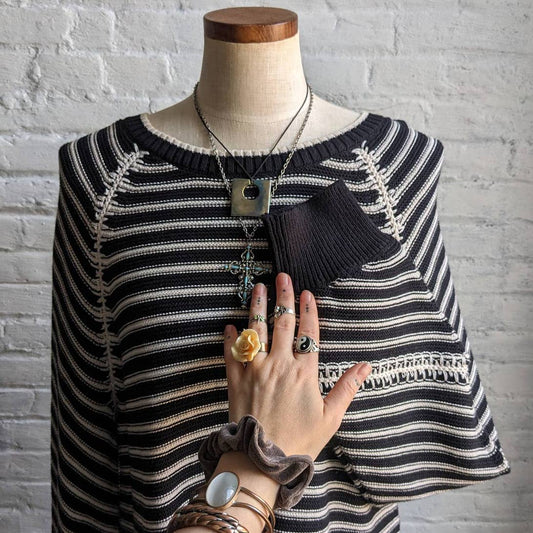 Vintage Chunky Knit Striped Cozy Sweater Minimalist Embroidered Slouchy Y2K Top
