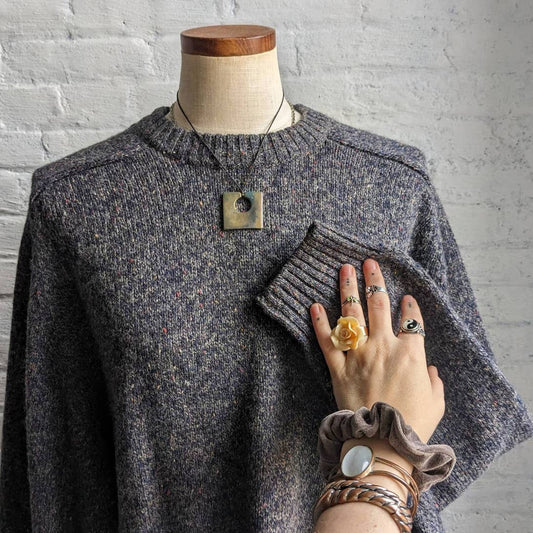 Vintage Knit Wool Grey Grandpa Sweater Minimalist Fairisle Grunge Earthtone Top