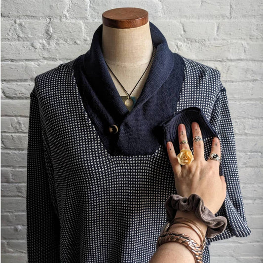 Vintage Minimalist Oversize Navy Grandpa Knit Sweater Cozy Grannycore Preppy Top