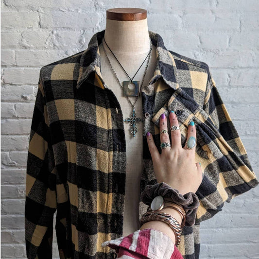 90s Vintage Grunge Fairy Flannel Minimalist Boyfriend Oversize Earthy Plaid Top