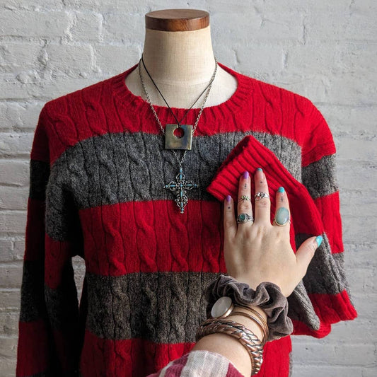 Vintage POLO Ralph Lauren Striped Wool Cable Knit Sweater Boyfriend Grunge Top