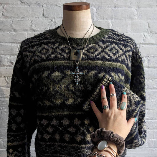 Vintage Knit Wool Green Grandpa Sweater Minimalist Fairisle Grunge Earthtone Top