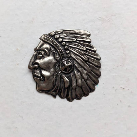 Vintage Southwest Americana Warrior Silver Pin Tribal Native Indigenous Brooch