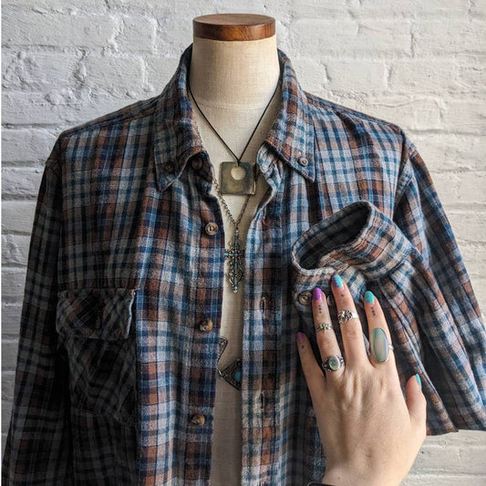 Vintage Oversize Boyfriend Plaid Flannel Dark Academia Grunge Earthy Forest Top