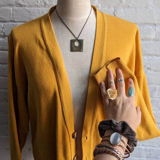 90s Vintage Mustard Sunshine Knit Cardigan Minimal Preppy Granny Chic Sweater