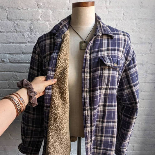 Vintage Wrangler Plaid Flannel Barn Coat Blue Oversize Blanket Chore Shacket